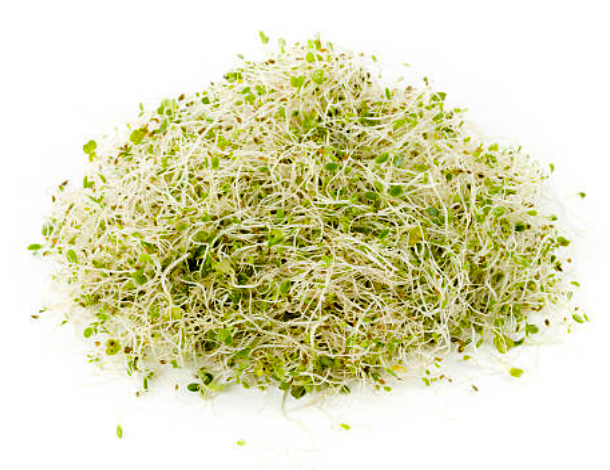 Cette luzerne se distingue de la variété courante par la taille imposante de ses germinations. Comme sa parente, elle est riche en protéine, vitamines, minéraux et antioxydants et les saponines qu’elle contient contribuent à lutter contre le mauvais cholestérol. On l’adore dans les salades et les sandwichs.